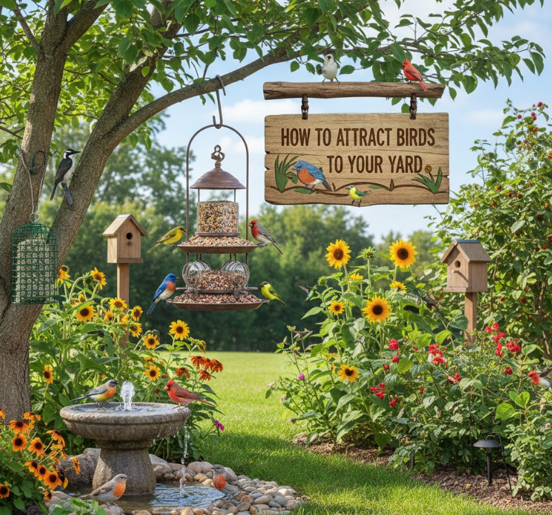 This comprehensive guide explains how to attract birds to a feeder, your yard, your garden, and a bird bath, using science-backed methods and practical experience. Each section focuses on natural, ethical, and sustainable bird-attraction techniques that benefit both birds and people.