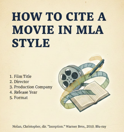 This comprehensive guide explains how to cite a movie in MLA format, including in-text citations, MLA 9 updates, and Works Cited entries, using clear explanations and practical examples. Written with experience-based insight and aligned with MLA Handbook (9th Edition) standards, this article ensures accuracy, authority, and trustworthiness while remaining easy to understand.