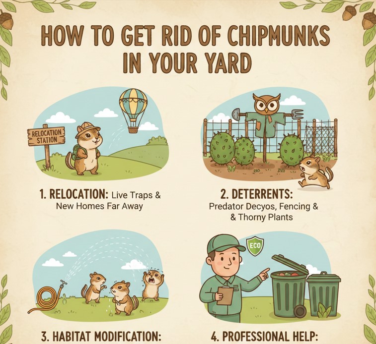 Successful chipmunk control always starts with habitat modification combined with deterrence or exclusion.