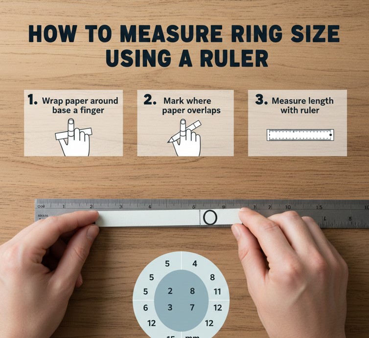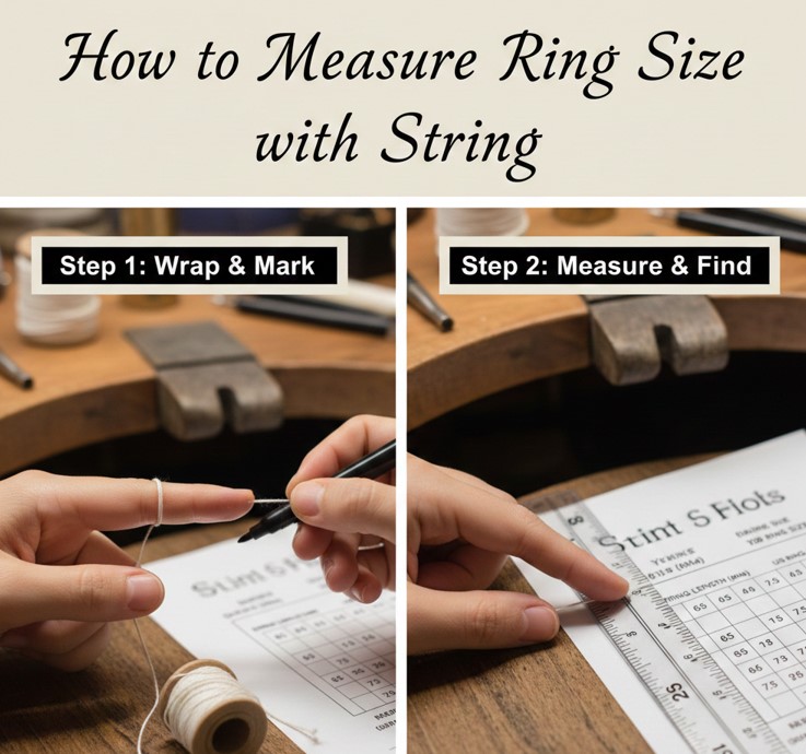 Common tools like string, paper strips, or a ruler work effectively when used precisely. Ensure the string is non-stretchable and the ruler has clear millimeter markings. Precision matters because even 1 mm can change ring size.