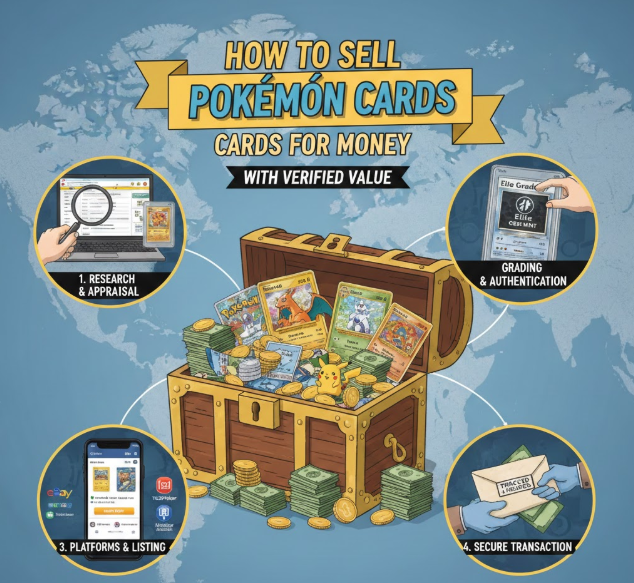 Whether your goal is learning how to sell Pokémon cards online, how to sell Pokémon cards fast, or how to sell Pokémon cards for money with verified value, this comprehensive guide will walk you through pricing strategies, grading systems, selling platforms, and safety considerations. The objective is simple: help you sell confidently, transparently, and at the highest possible return.
