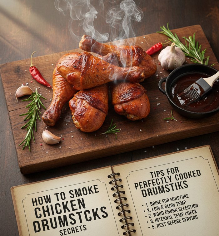 Smoking drumsticks typically takes 2–3 hours. Use a meat thermometer to ensure the internal temperature reaches 165°F (74°C).