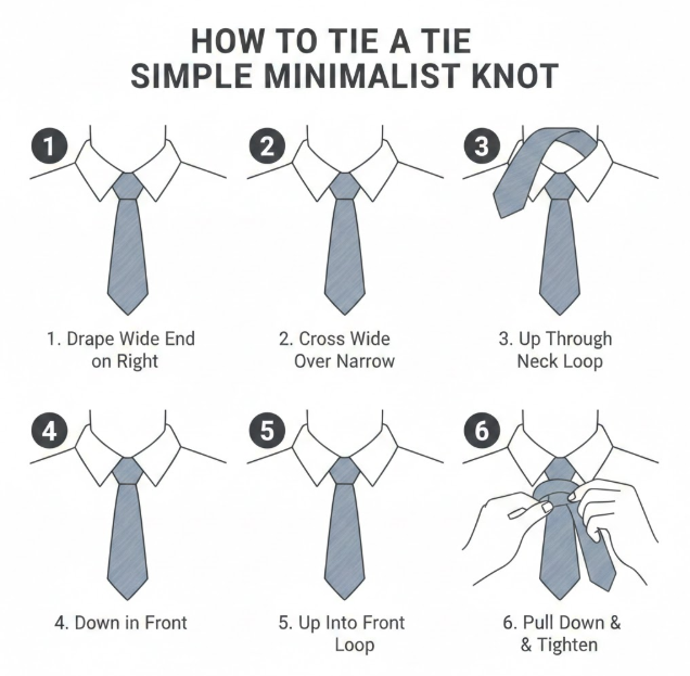 The simple knot, also called the Oriental knot, is compact and efficient. It suits slim ties and smaller collars. This method uses fewer movements but still produces a clean finish.